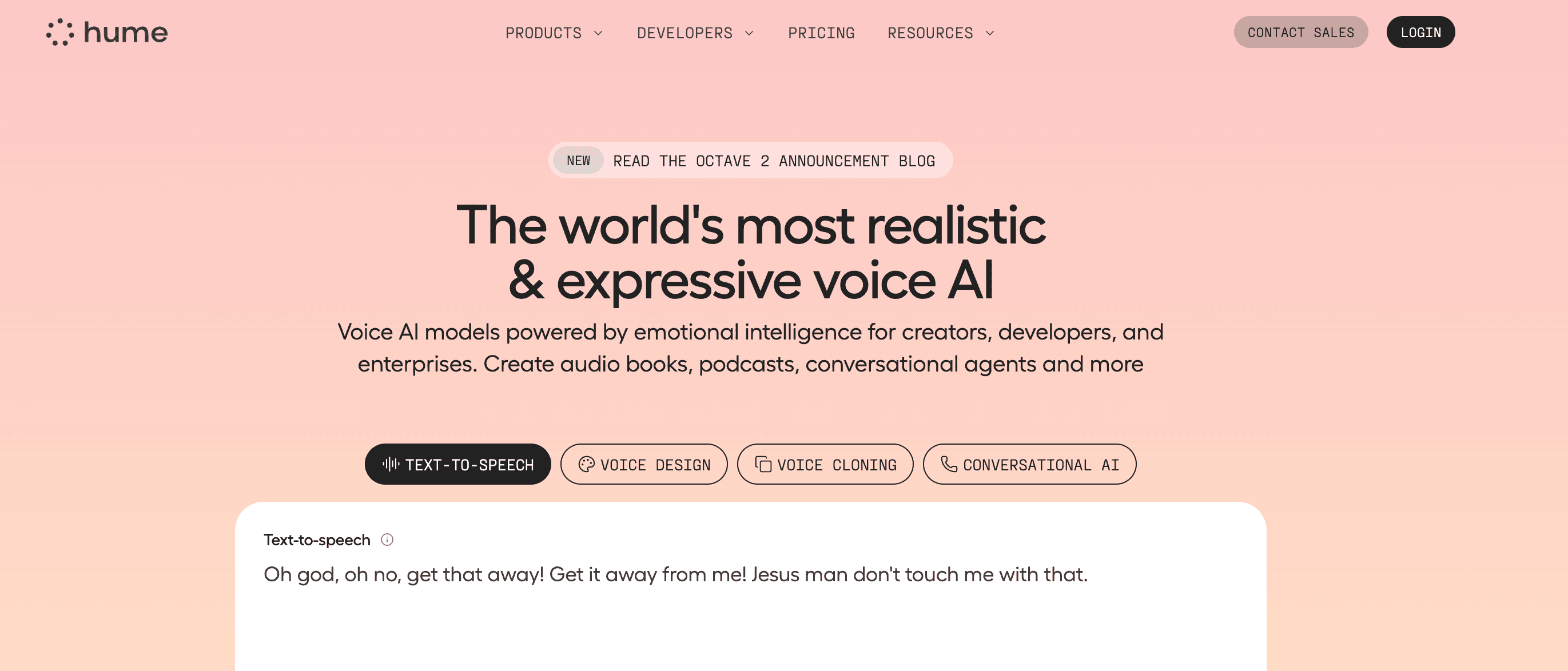 What they do: Hume's Octave platform generates speech that interprets emotional context automatically. Instead of manually adjusting SSML tags, you give natural language instructions: "sound sarcastic," "whisper fearfully," "speak with enthusiasm." The system understands what's meant contextually and adjusts tone, rhythm, and cadence accordingly. Octave supports 11 languages and can generate any voice from text prompts ("a grizzled cowboy with a Texan drawl," "a sophisticated British narrator"). Time-to-first-token is around 200ms. Hume also offers EVI (Empathic Voice Interface), a speech-to-speech system that responds to the user's emotional tone.