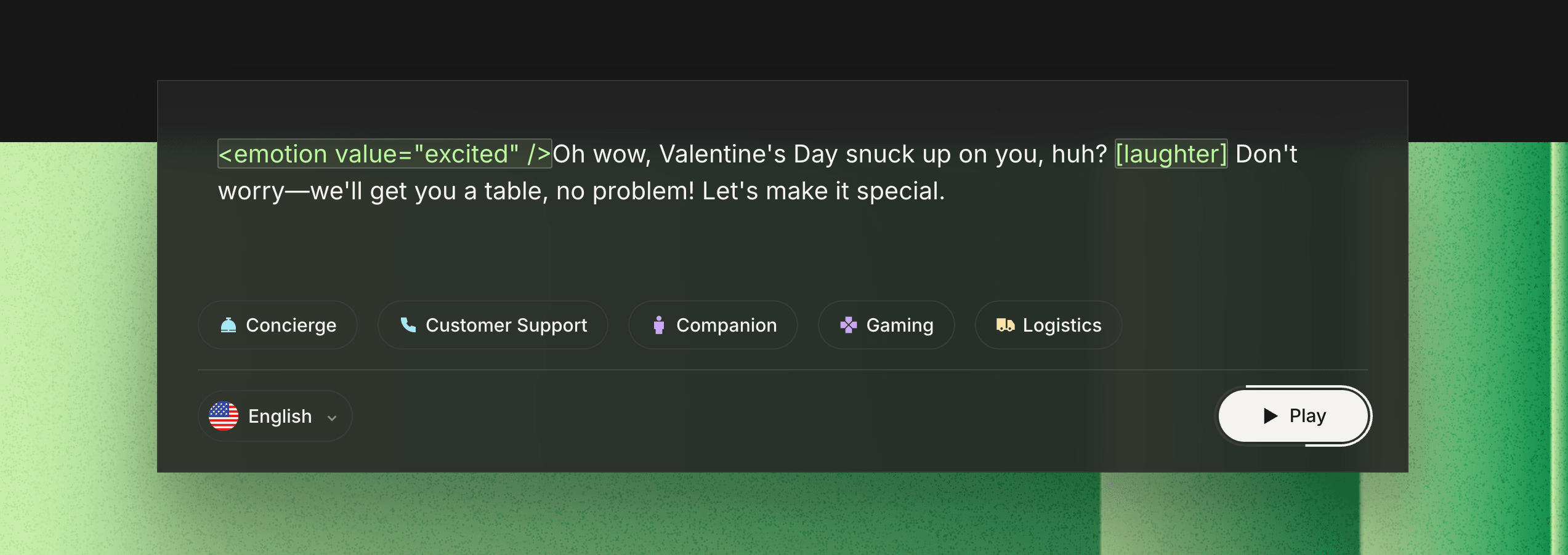 What makes them different: Raw speed. Cartesia consistently benchmarks as the fastest TTS API. Unlike many competitors, Sonic was purpose-built for real-time conversation, not batch narration. The addition of authentic nonverbal sounds such as laughter that doesn't feel uncanny or natural breathing, adds realism without entering ElevenLabs' premium price territory.