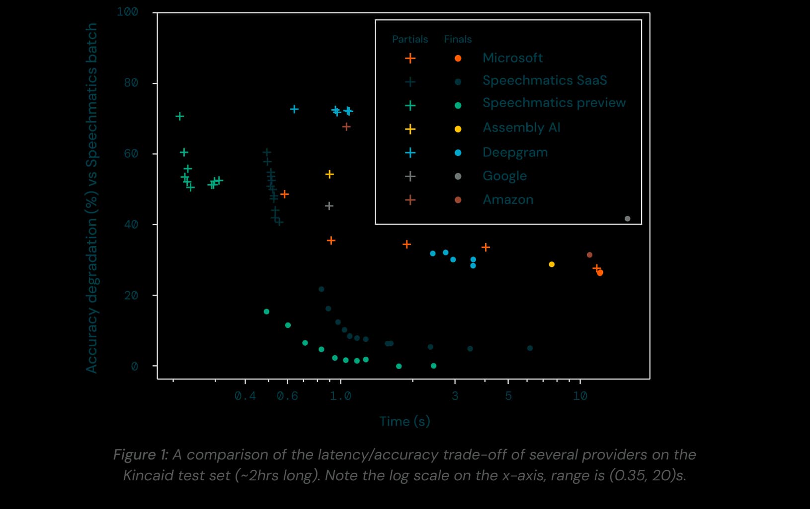 Speechmatics’ focus is on being the premium offering for enterprise. Our experience in ASR tells us that control, predictability and customizability is critical at the foundational “speech-in” layer.