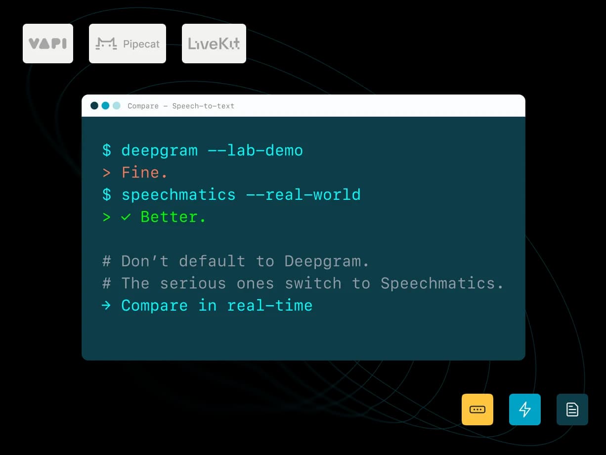 See why developers are switching to Speechmatics for superior speech-to-text accuracy, industry-leading language support, and advanced speaker diarization.